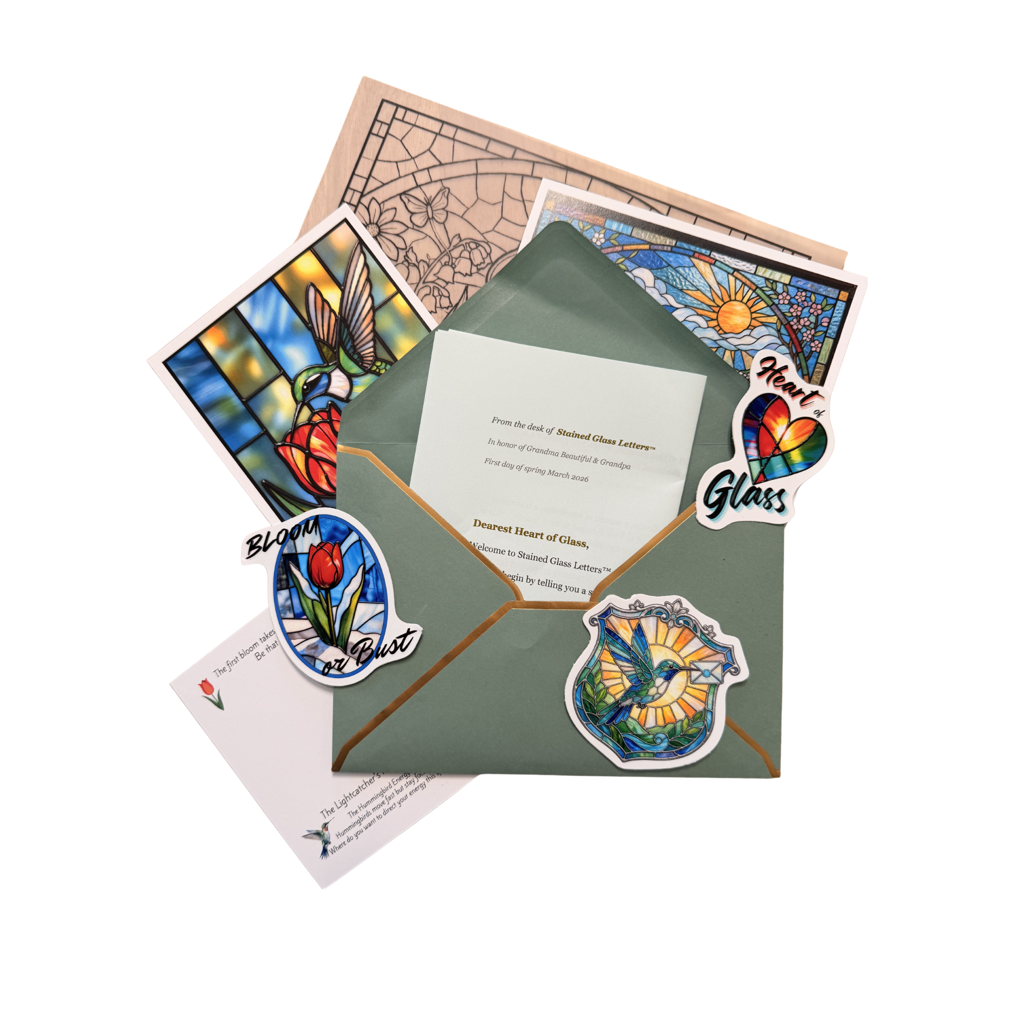 Stained Glass Letters is created by Ann, who is a person of faith. Occasionally, letters may include an inspirational quote, scripture, or faith-friendly message that reflects her personal beliefs and heart behind this mission. If you receive something that resonates with faith, know that it comes from a place of genuine care and encouragement. This product is for anyone who needs a little hope in their mailbox — regardless of background or belief.